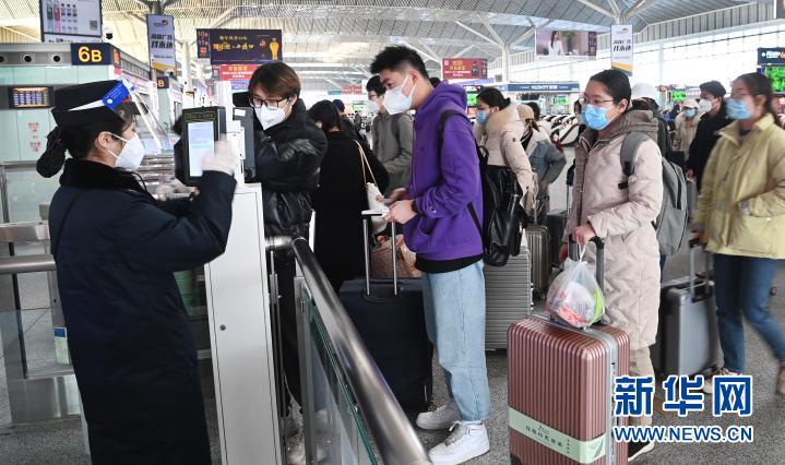 1月16日,西安北客站,離校返鄉(xiāng)的西安高校學(xué)生在排隊(duì)進(jìn)站。新華社記者 陶明 攝