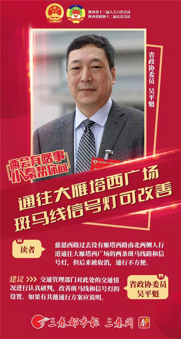 海報·建議|省政協(xié)委員吳平魁:通往大雁塔西廣場斑馬線信號燈可改善