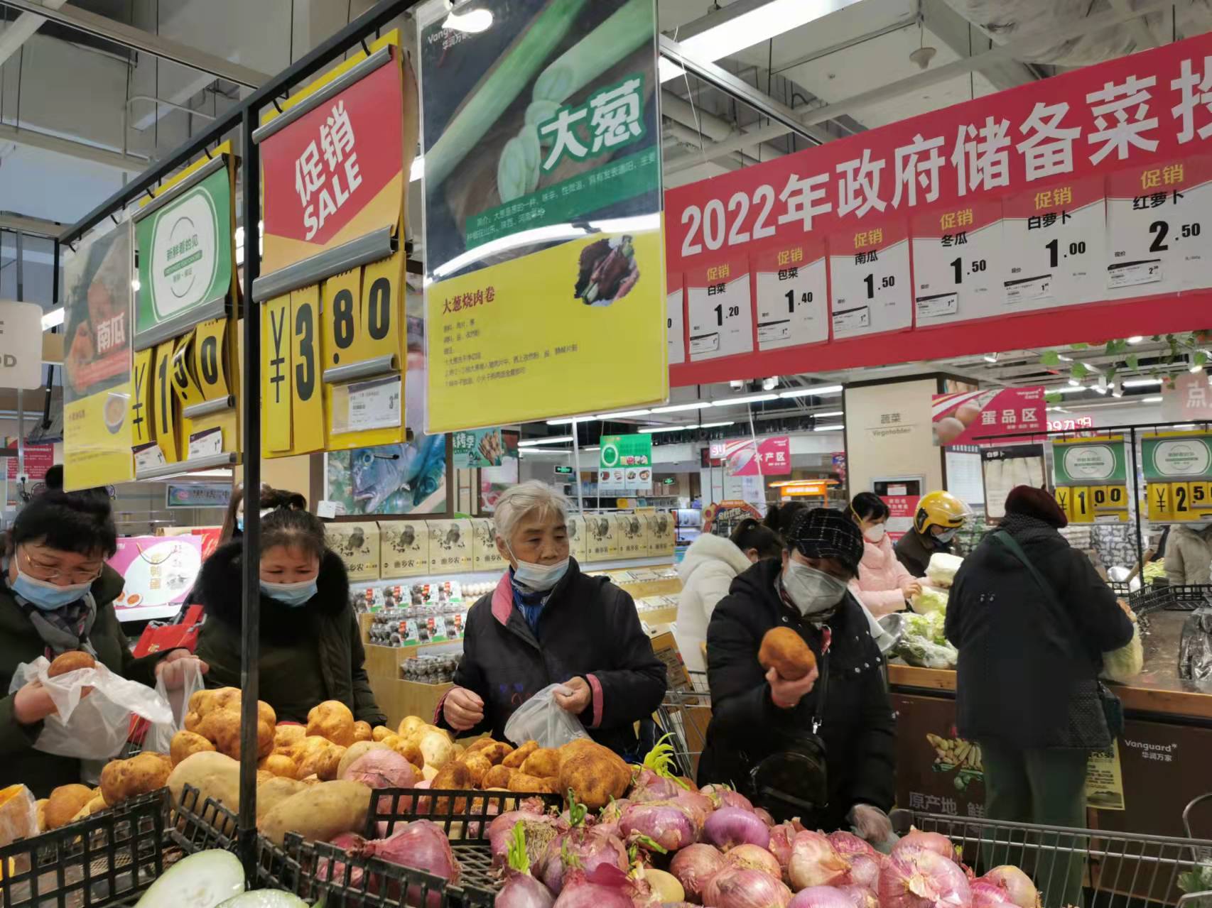 胡家廟蔬菜批發(fā)市場副總經理劉騫說:“作為投放點之一,我們市場共投放白菜1200噸、土豆550噸、卷心菜150噸。白菜每斤1元,土豆每斤0.9元,卷心菜每斤1.2元。不僅價格便宜,數量也很充足,一直供應到過年。”