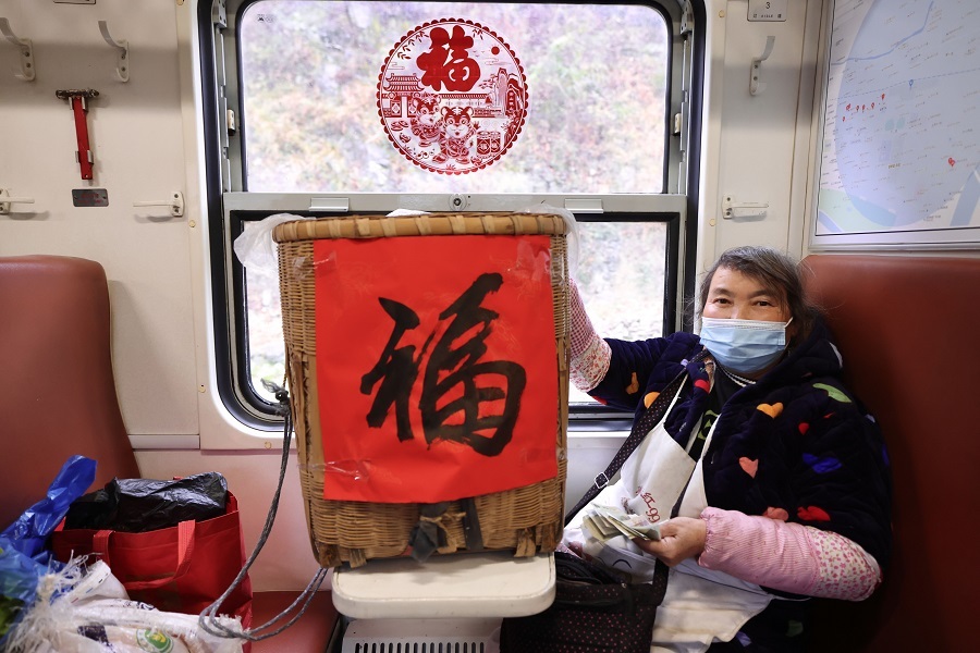 列車到達(dá)略陽(yáng)車站前,早早在車門口等候下車的乘客劉大姐對(duì)準(zhǔn)備打開車門組織乘降的列車員衛(wèi)進(jìn)忠開心地說:“今天這趟沒白跑,收到了小慢車送的對(duì)聯(lián)和福字,這個(gè)年真是吉祥,謝謝你們!”“每年我們都會(huì)在小年為老鄉(xiāng)們送上新年祝福,大家的致富路上,小慢車一直都在,從不會(huì)缺席。”衛(wèi)進(jìn)忠說。