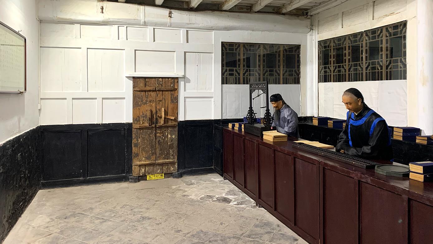 △日昇昌記內(nèi),還原了票號當(dāng)年對外營業(yè)的柜房環(huán)境。(總臺(tái)央視記者 段德文拍攝)