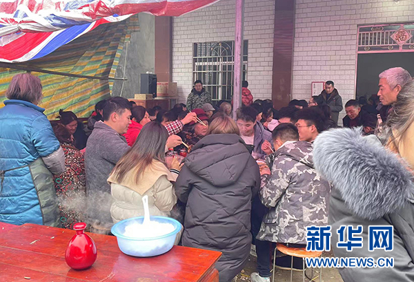 2月7日,當?shù)剞r(nóng)歷虎年的第一場壩壩宴。新華網(wǎng)發(fā)(譚俊 攝)