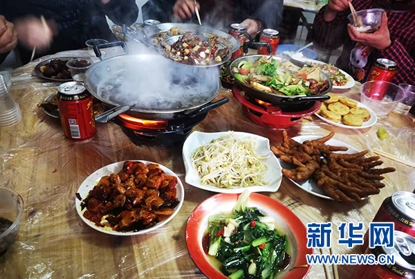 2月7日,當?shù)剞r(nóng)歷虎年的第一場壩壩宴。新華網(wǎng)發(fā)(孫金芳 攝)