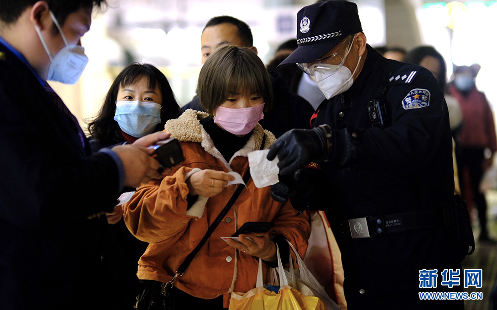 乘警蔣大兵引導乘客有序登車。新華網(wǎng)發(fā) 賀瑞明攝