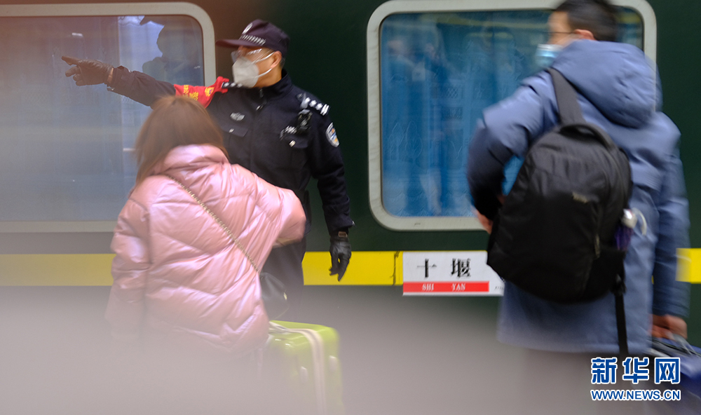 “請大家看好隨身物品,依次上車,不要擁擠。”2月7日是節(jié)后返程客流高峰時刻,當天11:20許,在湖北十堰火車站站臺,一位聲音洪亮、神采奕奕的乘警來回走在列車旁,一邊維護乘車秩序,一邊提醒乘客有序上車。