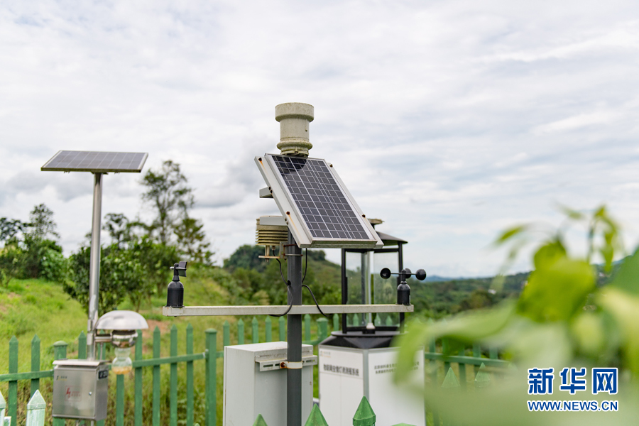 圖為青龍村數(shù)字化無人果園內的“小氣候監(jiān)測站”。新華網(wǎng) 耿駿宇 攝