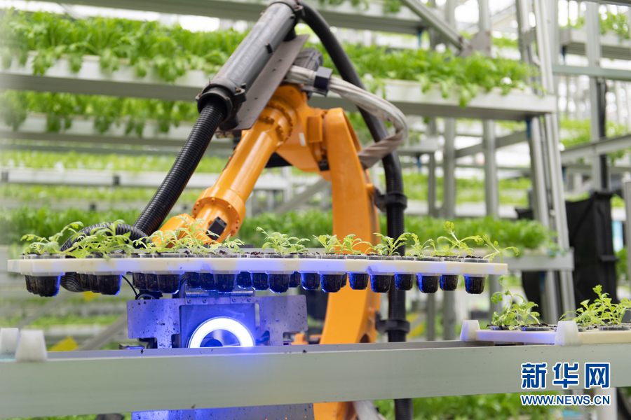工廠內的蔬菜栽培,采用了智能化立體式栽培技術,韭菜、茼蒿等原來長在地里的蔬菜,如今長在種植架上,產量較傳統(tǒng)露地栽培也可以增產數(shù)倍以上。從“一粒種子到一顆菜”實現(xiàn)全程無人化作業(yè),施肥由智能化計算管控,農活由機器人承包。