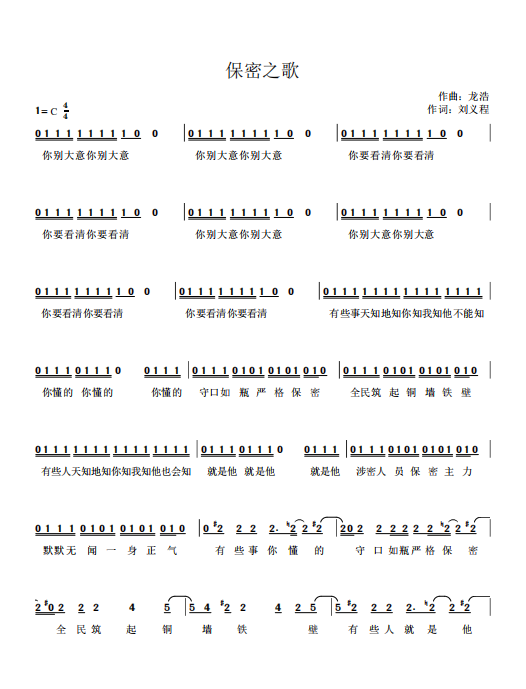 慶祝建黨百年獲獎歌曲作品選集——《保密之歌》詞曲。