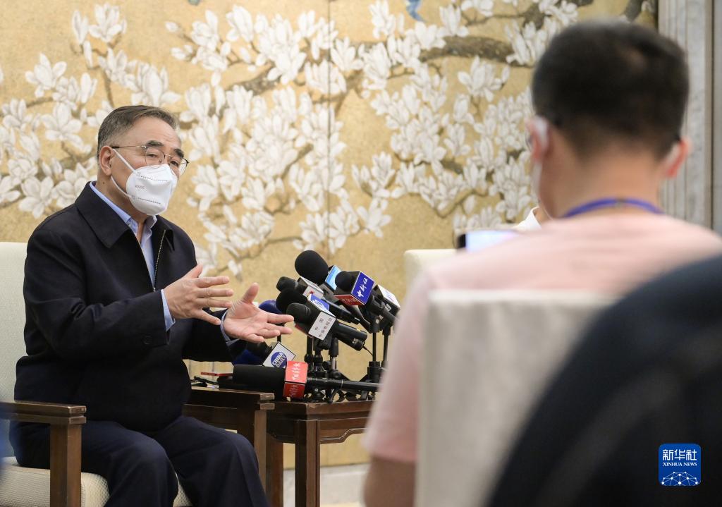 中國(guó)工程院院士、天津中醫(yī)藥大學(xué)名譽(yù)校長(zhǎng)張伯禮(左)在上海接受記者采訪(4月24日攝)。新華社記者 李賀 攝