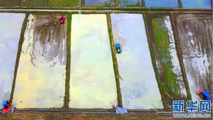 在江西省宜春市袁州區(qū)新田鎮(zhèn)里光村的水田里,數(shù)十臺拖拉機(jī)齊上陣,在春天的田野上描繪出一幅幅“鐵牛鬧春圖”。新華網(wǎng)發(fā) 張文 攝
