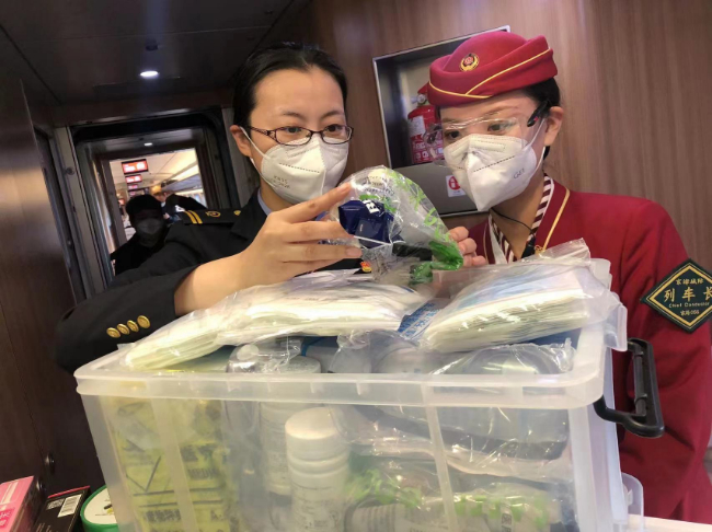 楊珺通常是早上5點剛過,就早早來到天津站站臺,等候登上早上6點半左右的第一班列車檢查乘務工作。疫情以來,楊珺總是習慣“早到一點”,充分利用這段“慢節(jié)奏”時間,靜下心來把近期的重點工作梳理清楚,編輯成微信溫馨提示發(fā)送給即將出乘的班組,方便大家閱讀學習。列車一到站臺,楊珺就和出乘的班組一同登上列車,開始了細致的檢查,車廂衛(wèi)生,備品擺放,物品定型,設備設施的狀況,防疫用品的配備,“勞動節(jié)假期快要到了,客流量會比往日增加,這期間我們一定要比平時更加細致,像座位扶手、垃圾箱、門把手,只要是旅客頻繁接觸的位置,都必須逐一落實消毒要求……”每走到一個車廂,楊珺都會一遍又一遍地叮囑,并且和乘務員一起落實所在區(qū)域的重點安全工作。