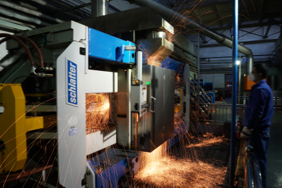 “90后”焊機(jī)操作手楊宇,左手快速擦去額頭上細(xì)密的汗珠,右手打開(kāi)焊機(jī)艙門(mén)查看鋼軌焊接狀態(tài),只見(jiàn)兩根鋼軌的焊縫處“燒”的火紅,楊宇確認(rèn)無(wú)誤后,啟動(dòng)傳送輥道,第3根鋼軌也要在這里進(jìn)行焊接,直到5根100米母材焊接成500米長(zhǎng)鋼軌。