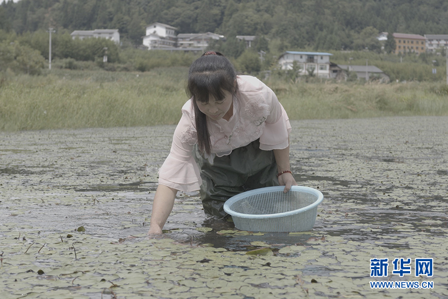 在冷水鎮(zhèn),當地居民正在莼田里采摘莼菜。新華網 朱清 攝