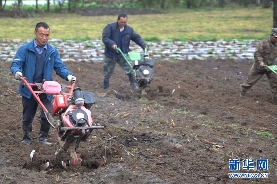 3月25日,冷水鎮(zhèn)玉龍村村民正在用農機犁地,準備播種高山反季節(jié)蔬菜。新華網 耿駿宇 攝