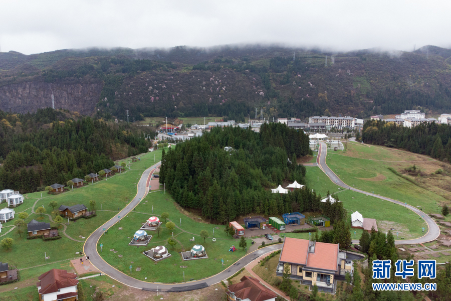 從空中航拍重慶高速冷水服務區(qū)生態(tài)旅游自駕營地。新華網 耿駿宇 攝