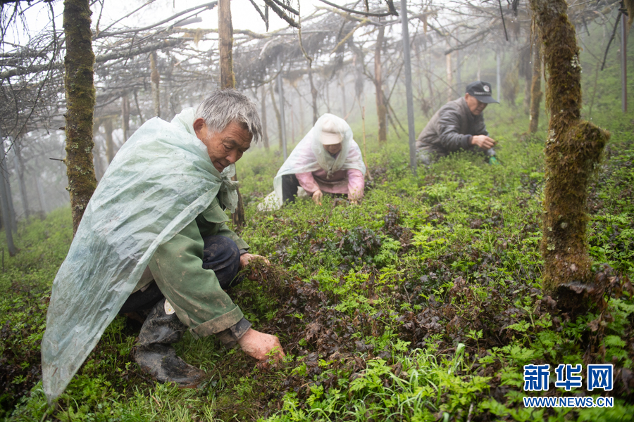 圖為村民在石柱縣冷水鎮(zhèn)玉龍村黃連種植基地內對黃連進行管護。新華網 耿駿宇 攝