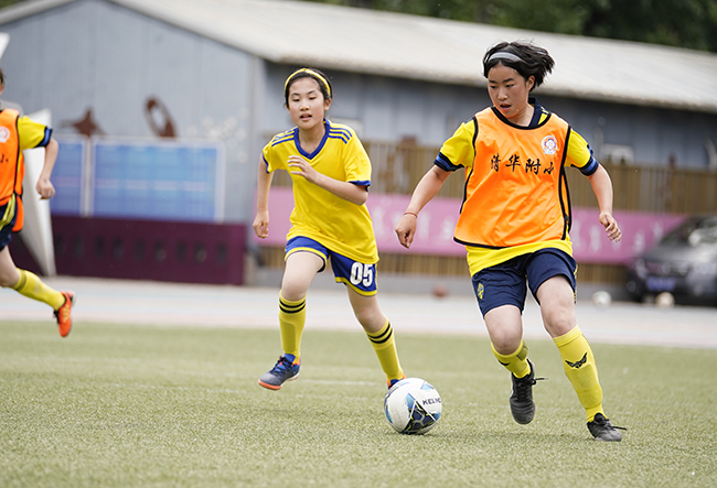 清華附小舉行的第十屆“馬約翰杯”足球聯(lián)賽,女生在比賽中拼搶。(資料圖片)(受訪(fǎng)者供圖)