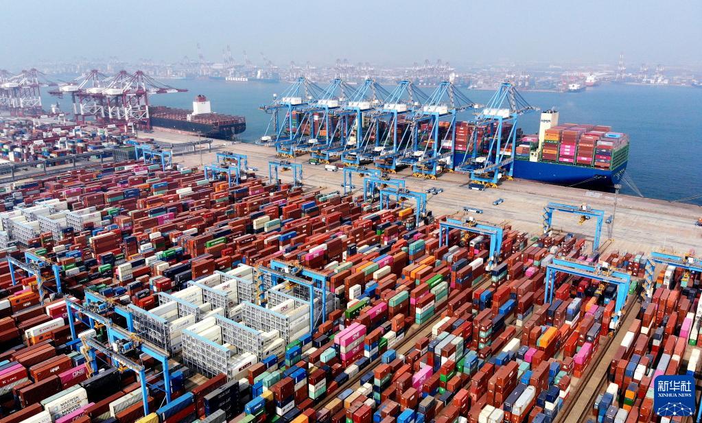 山東港口青島港前灣集裝箱碼頭(3月24日攝,無(wú)人機(jī)照片)。新華社記者李紫恒攝