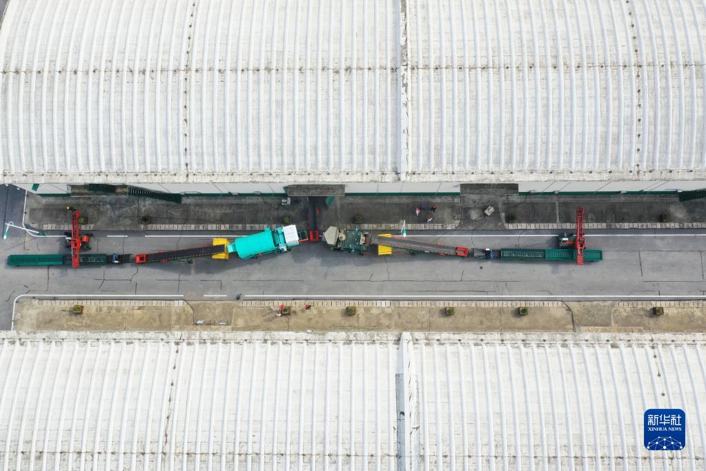5月24日,在中央儲備糧鄧州直屬庫有限公司內(nèi),糧食入庫全套流程設備已架設完畢(無人機照片)。新華社記者 張浩然 攝