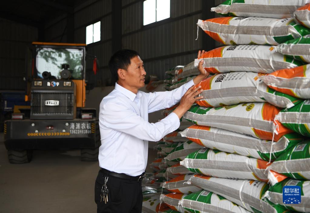 5月26日,在河南省南陽市唐河縣湖陽鎮(zhèn)張灣村,種糧大戶趙建成在整理倉庫里的化肥,準備夏收之后的夏種。新華社記者 張浩然 攝