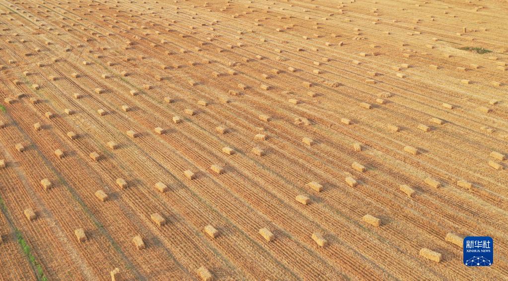 這是6月8日在河南省安陽市滑縣小鋪鄉(xiāng)界河路村拍攝的打捆的麥秸(無人機照片)。新華社記者 張浩然 攝
