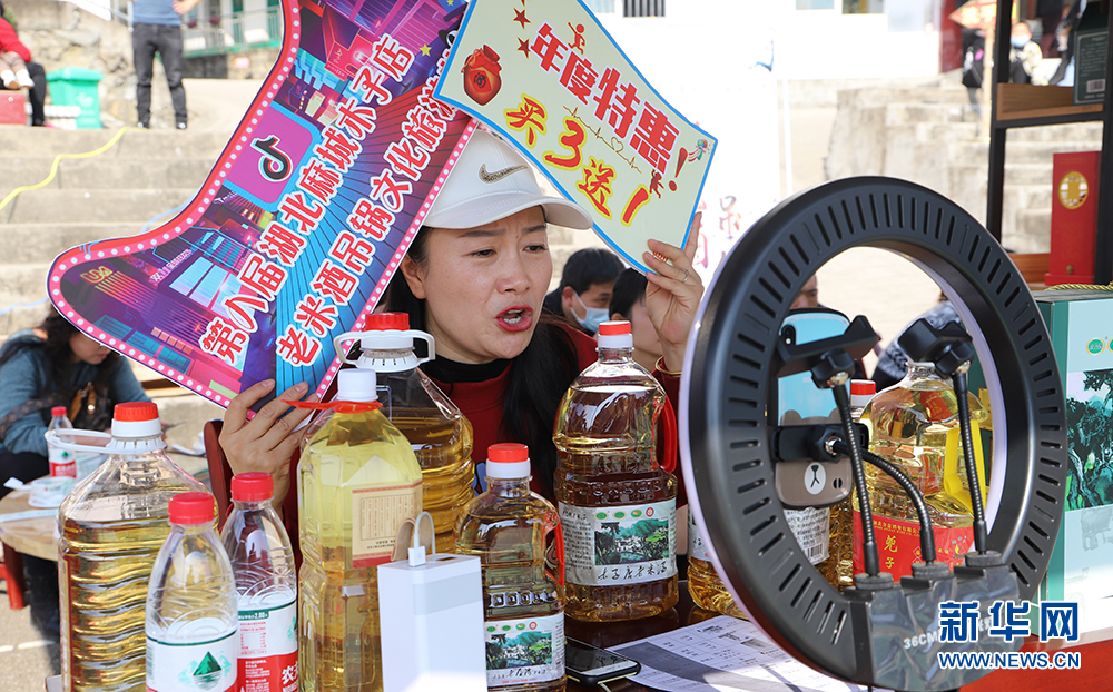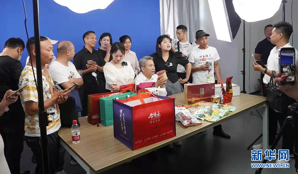 圖為黃岡市浠水縣“網(wǎng)紅”主播直播帶貨助農(nóng)銷售。新華網(wǎng)發(fā)