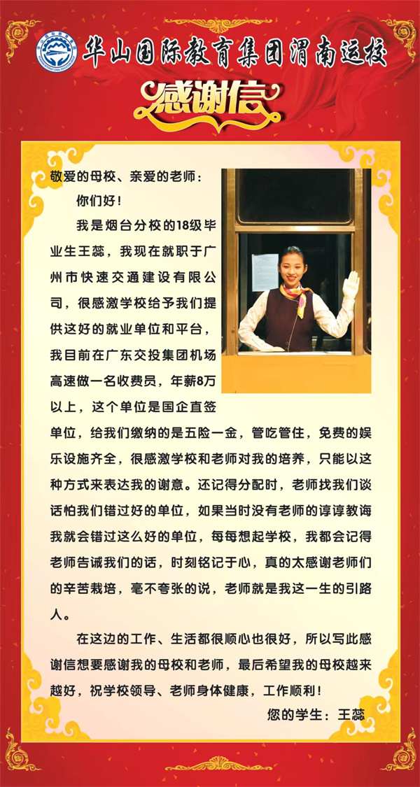 安置到廣東國企高速的我校優(yōu)秀畢業(yè)生沈煒,在單位現(xiàn)任管理崗位督導員,年薪10萬以上