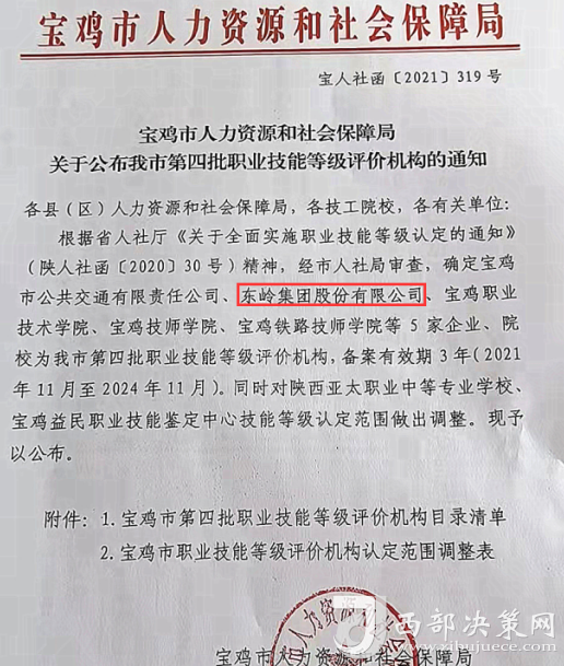 據(jù)悉,東嶺集團(tuán)技能等級評價機(jī)構(gòu)在做好企業(yè)內(nèi)部技能人才評價的同時,還以職業(yè)技能等級評價機(jī)構(gòu)為依托,為寶雞市技能人才就業(yè)提供相關(guān)服務(wù)。(邱晨)