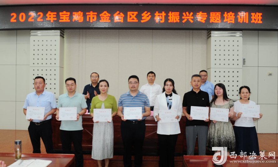 西部決策網(wǎng)訊 8月6日下午,為期三天的“2022年寶雞市金臺(tái)區(qū)鄉(xiāng)村振興專題培訓(xùn)班”結(jié)束了!60余學(xué)員順利的拿到了結(jié)業(yè)證。寶雞文理學(xué)院經(jīng)濟(jì)管理學(xué)院院長、陜西鄉(xiāng)村振興研究中心主任劉輝;金臺(tái)區(qū)政府副區(qū)長郭小軍出席了結(jié)業(yè)儀式。參加結(jié)業(yè)儀式的還有金臺(tái)區(qū)鄉(xiāng)村振興局主要負(fù)責(zé)人、分管領(lǐng)導(dǎo),各鎮(zhèn)涉農(nóng)街道黨(工)委書記和鄉(xiāng)村振興工作分管領(lǐng)導(dǎo),區(qū)委實(shí)施鄉(xiāng)村振興戰(zhàn)略領(lǐng)導(dǎo)小組和區(qū)委抓黨建促鄉(xiāng)村振興領(lǐng)導(dǎo)小組各成員單位分管領(lǐng)導(dǎo)。結(jié)業(yè)儀式由金臺(tái)區(qū)鄉(xiāng)村振興局局長鄭偉平主持。