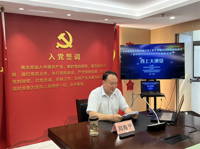 8月12日上午,陜西省建設(shè)工程質(zhì)量安全監(jiān)督總站黨支部堅持以黨建引領(lǐng)安全方面各項工作,組織開展《危險性較大的分部分項工程專項施工方案編制指南》線上講座。此次講座邀請了杭州品茗安控信息技術(shù)股份有限公司專家講師鄧文梓教授做詳細培訓(xùn),陜西省各級質(zhì)量安全監(jiān)督機構(gòu)分別在各分會場通過視頻直播的方式相聚云端。各施工單位、監(jiān)理單位及在建項目的安全管理人員、技術(shù)負責(zé)人等共計一萬余人參與學(xué)習(xí)。