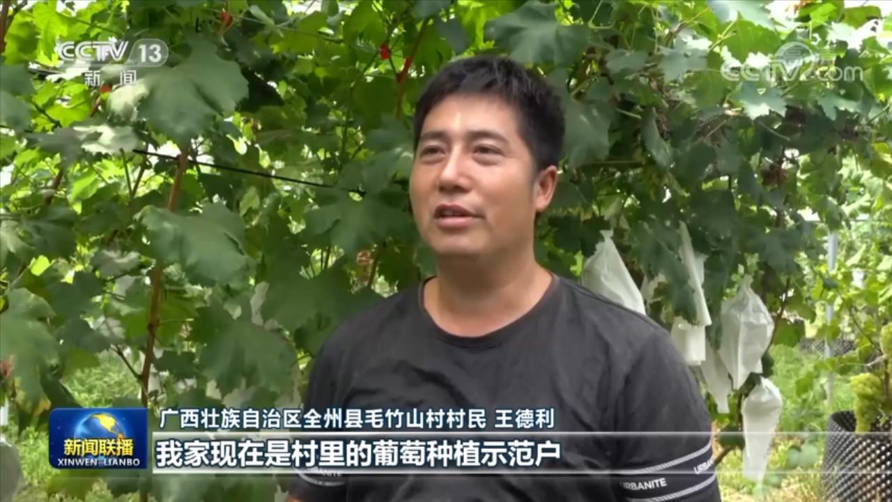 廣西壯族自治區(qū)全州縣毛竹山村村民 王德利:去年總書記來我們家,囑托我們注重學(xué)習(xí)科學(xué)技術(shù),用知識托起鄉(xiāng)村振興。我家現(xiàn)在是村里的葡萄種植示范戶,去年光葡萄一項(xiàng),我家就收入10多萬元。