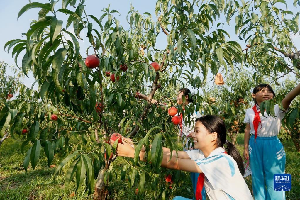 9月1日,山東青島藍谷高新區(qū)東皋埠小學(xué)的學(xué)生在即墨區(qū)靈山街道沃家泊子村潤豐農(nóng)場體驗田間課堂。新華社發(fā)(梁孝鵬 攝)