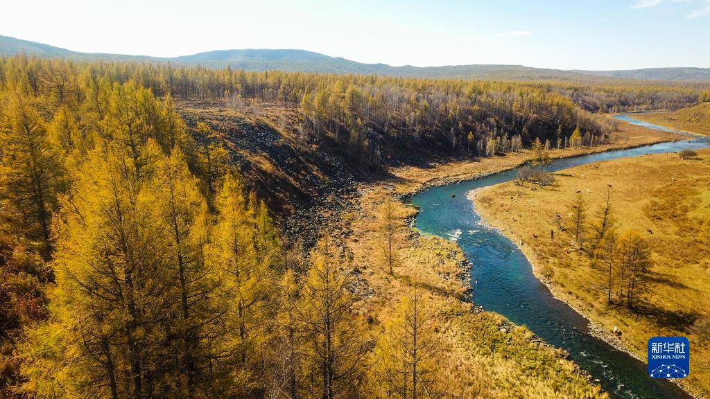 這是9月21日拍攝的阿爾山國家森林公園中不凍河的自然風光(無人機照片)。新華社記者 彭源 攝