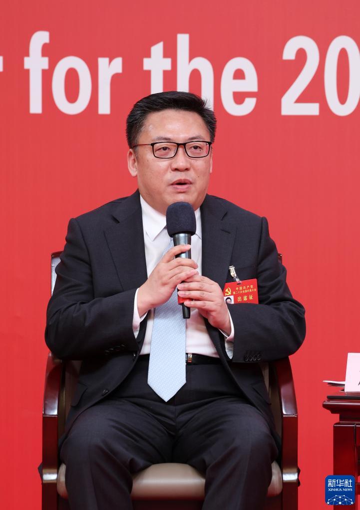 10月18日,中國共產(chǎn)黨第二十次全國代表大會新聞中心舉行集體采訪。黑龍江、上海、江蘇、浙江、安徽、福建、江西代表團(tuán)新聞發(fā)言人出席,介紹代表團(tuán)學(xué)習(xí)討論二十大報告情況,并回答記者提問。這是浙江省委常委、宣傳部部長王綱在回答記者提問。新華社記者 張玉薇 攝
