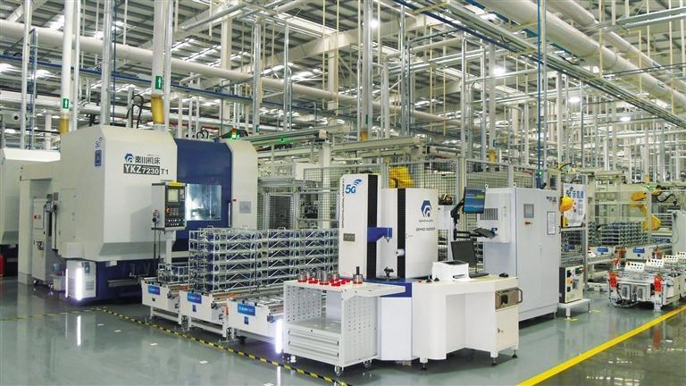 10月10日,在法士特高智新公司智能化生產(chǎn)線上數(shù)控機(jī)床正在工作中。 記者 沈謙攝