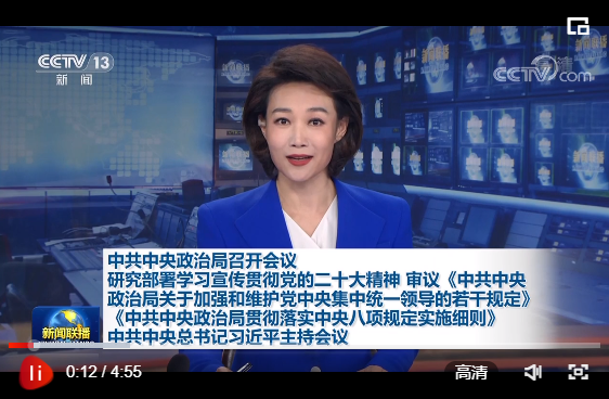 二十屆中共中央政治局10月25日召開會議,研究部署學習宣傳貫徹黨的二十大精神,審議《中共中央政治局關(guān)于加強和維護黨中央集中統(tǒng)一領(lǐng)導的若干規(guī)定》《中共中央政治局貫徹落實中央八項規(guī)定實施細則》。中共中央總書記習近平主持會議。