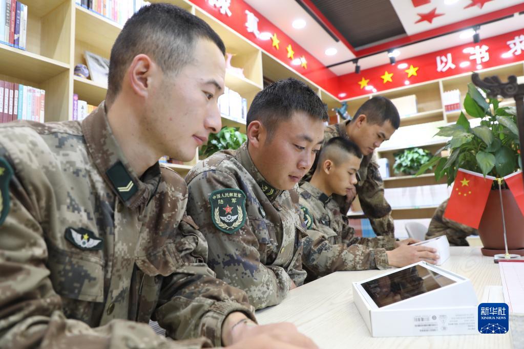 中共中央總書記、國家主席、中央軍委主席習近平24日下午出席軍隊領導干部會議時發(fā)表的重要講話,在解放軍和武警部隊引起強烈反響。這是新疆軍區(qū)奧爾托蘇邊防連官兵在圖書室認真學習習主席重要講話(10月25日攝)。新華社發(fā)(劉南松 攝)