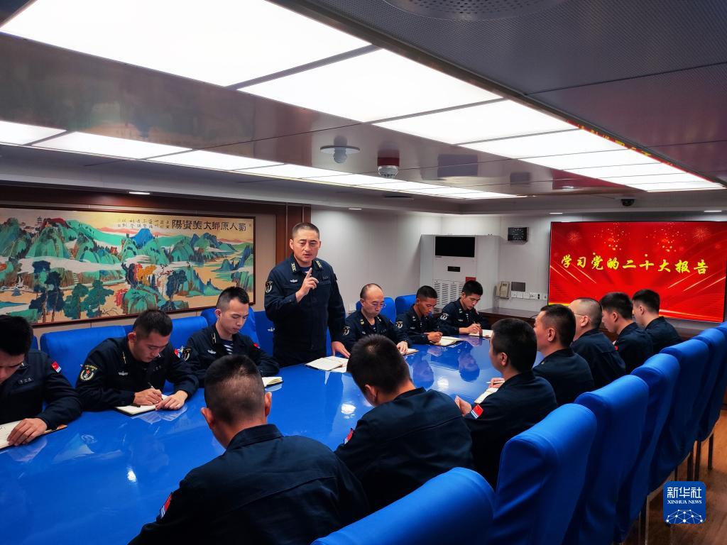 中共中央總書記、國家主席、中央軍委主席習近平24日下午出席軍隊領導干部會議時發(fā)表的重要講話,在解放軍和武警部隊引起強烈反響。這是東部戰(zhàn)區(qū)海軍護衛(wèi)艦支隊迅速組織官兵學習習主席重要講話(10月25日攝)。新華社發(fā)(劉祎瑋 攝)
