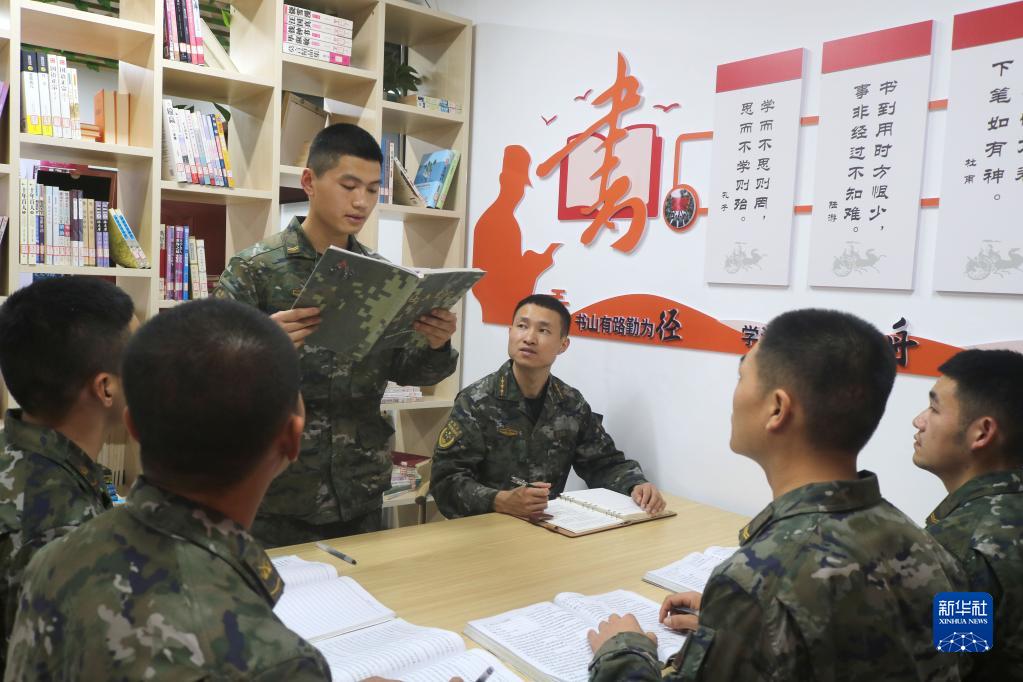 中共中央總書記、國家主席、中央軍委主席習近平24日下午出席軍隊領導干部會議時發(fā)表的重要講話,在解放軍和武警部隊引起強烈反響。這是南部戰(zhàn)區(qū)陸軍第74集團軍某合成旅“大渡河連”組織官兵認真學習習主席重要講話(10月25日攝)。新華社發(fā)(薛健 攝)