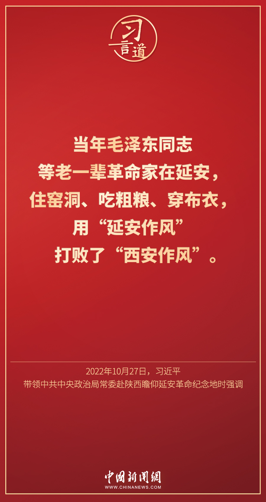 黨的二十大閉幕不到一周,中共中央總書記、國家主席、中央軍委主席習(xí)近平帶領(lǐng)中共中央政治局常委李強、趙樂際、王滬寧、蔡奇、丁薛祥、李希,專程從北京前往陜西延安,瞻仰延安革命紀(jì)念地。此行中,習(xí)近平多次談到延安精神——