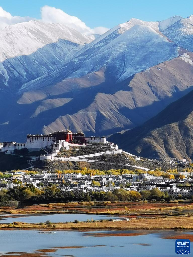 這是從拉魯濕地方向拍攝的布達拉宮(10月29日攝)。新華社記者 沈虹冰 攝
