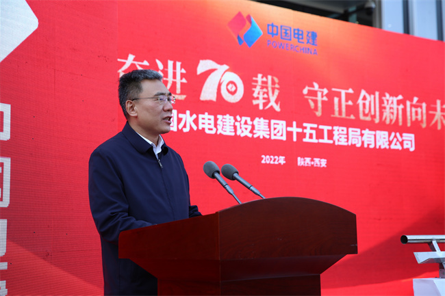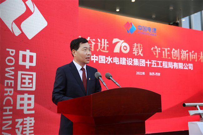 水電十五局黨委書記、董事長(zhǎng)梁向峰發(fā)表致辭。他指出,70年來(lái)水電十五局緊緊跟隨共和國(guó)的腳步,以自帶風(fēng)雷的氣概與共和國(guó)一起成長(zhǎng),數(shù)代十五局人歷經(jīng)坎坷卻勇毅向前,在祖國(guó)大地建起了一項(xiàng)項(xiàng)雄美的工程!特別是黨的十八大以來(lái)的10年,著力推動(dòng)企業(yè)高質(zhì)量發(fā)展,大力提升內(nèi)生能力,大力擴(kuò)展業(yè)務(wù)布局,在區(qū)域及領(lǐng)域均形成大土木的業(yè)務(wù)結(jié)構(gòu),在產(chǎn)業(yè)鏈上不斷加快投資業(yè)務(wù)、總承包業(yè)務(wù)、融資加總承包業(yè)務(wù)等商業(yè)模式的構(gòu)建,國(guó)際業(yè)務(wù)遍布全球多個(gè)國(guó)家和地區(qū),總量占比全局的四分之一。以延安引黃、灃河治理,易俗社改造、興慶公園改造等項(xiàng)目為代表的新名片使十五局人更加自信。黨的二十大剛剛閉幕,中國(guó)的歷史翻開了新的一頁(yè),特殊的日子,迎來(lái)建局70周年,同時(shí)入駐新的辦公大樓,在習(xí)近平新時(shí)代中國(guó)特色社會(huì)主義思想指引下,十五局人將在新時(shí)代的浪潮中倍加努力,再創(chuàng)輝煌!