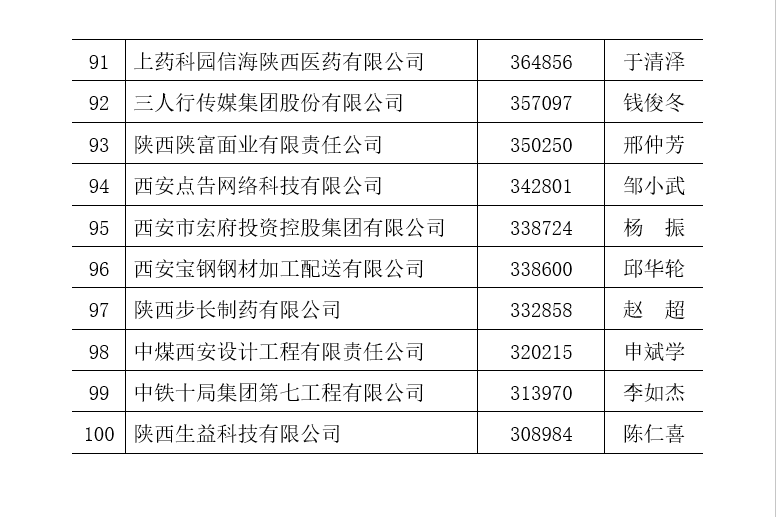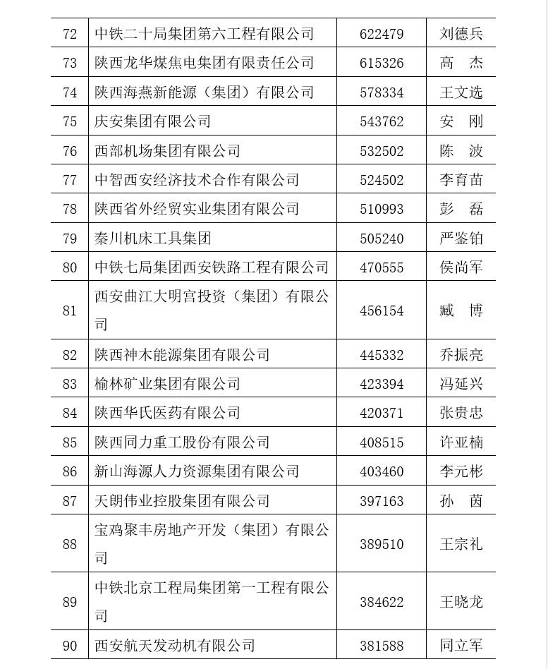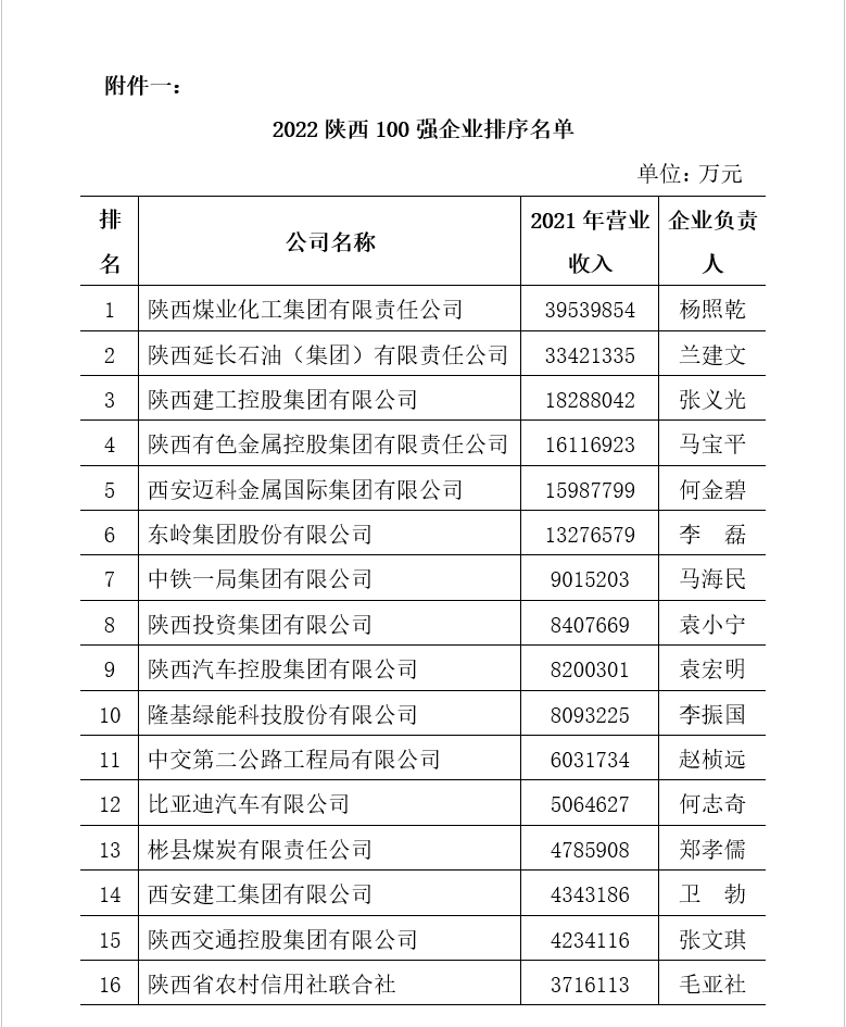 附件一:2022陜西企業(yè)100強(qiáng)排序名單