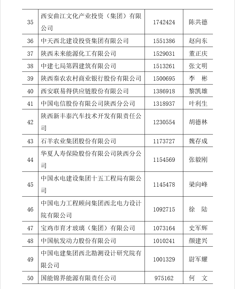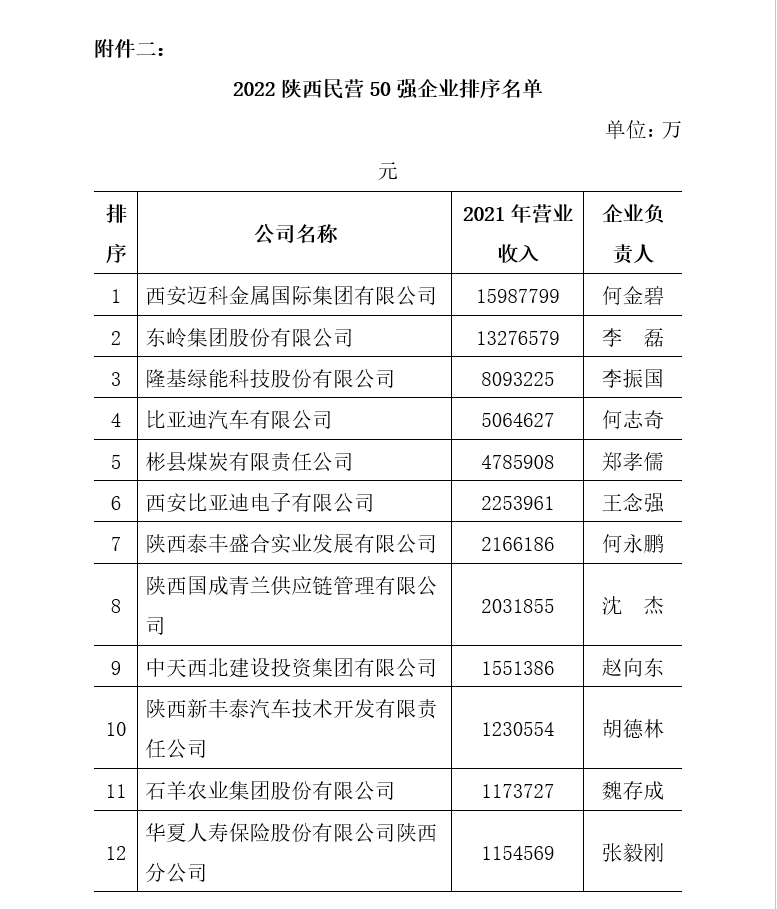 附件二:2022陜西民營(yíng)企業(yè)50強(qiáng)排序名單