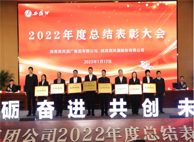會上,全體與會人員共同觀看了《2022年公司發(fā)展成果回顧》視頻。西鳳股份公司副董事長、總經(jīng)理賈智勇宣讀《關(guān)于對2022年度先進單位、先進個人進行表彰獎勵的決定》;西鳳集團公司黨委副書記郭拴新宣讀《關(guān)于命名表彰公司2022年度文明單位、文明班組、文明家庭和文明宿舍的決定》;西鳳集團公司副總裁楊會軍宣讀《關(guān)于表彰2022年度先進分會和優(yōu)秀工會積極分子的決定》;西鳳股份公司副總經(jīng)理師紅勤宣讀《關(guān)于對“大干四季度 沖刺全年目標任務(wù)”競賽活動獲獎單位進行表彰獎勵的決定》。公司領(lǐng)導為受表彰的先進單位和個人頒發(fā)了獎牌和榮譽證書。
