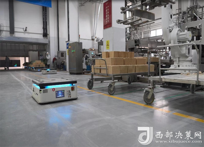 “駛?cè)搿㈨斊?、旋轉(zhuǎn)、前進(jìn)……”一走進(jìn)西鳳酒智能化技改701制曲車間,記者就看到一個(gè)個(gè)散發(fā)著科技光輝的“板車寶寶”穿梭在車間的運(yùn)輸通道上,有條不紊地進(jìn)行著曲塊運(yùn)輸工作。