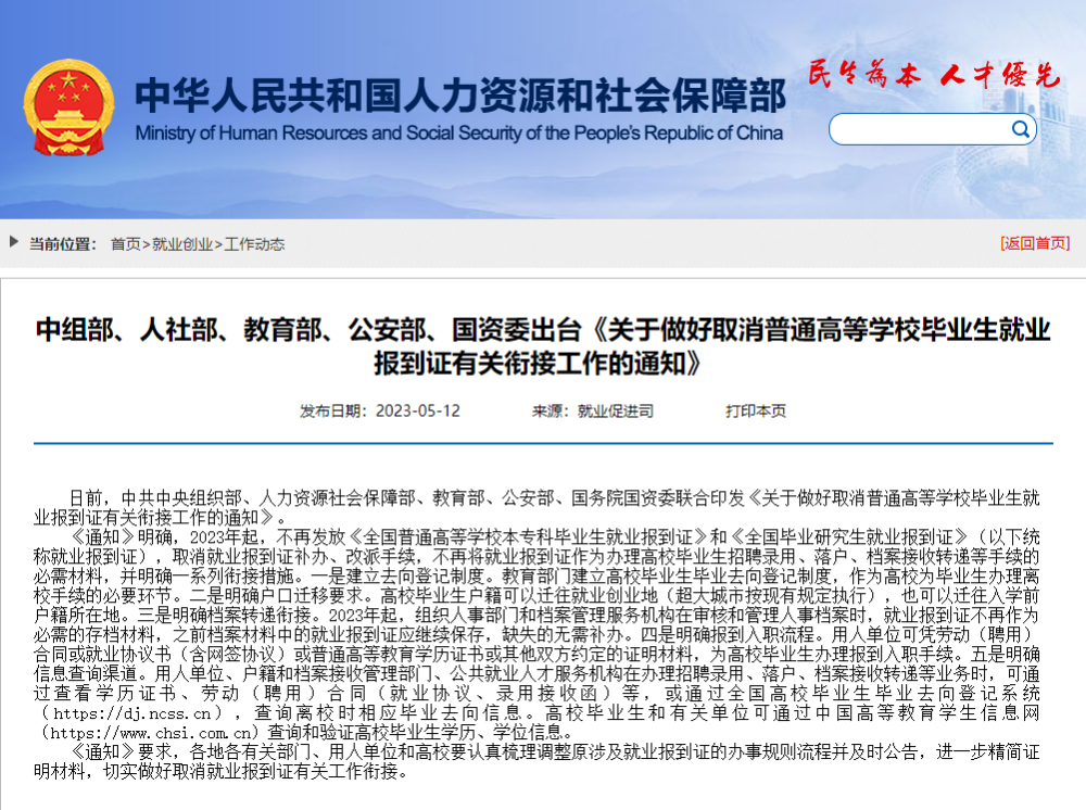五部門:2023年起不再發(fā)放就業(yè)報到證