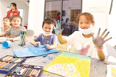 江口村的孩子在藝術(shù)區(qū)工藝美術(shù)培訓班上畫畫。鐘 磊攝