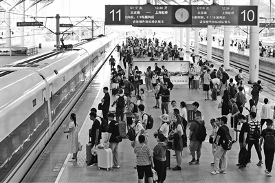 圖為當日旅客在徐州東站站臺候車。新華社記者 毛俊 攝