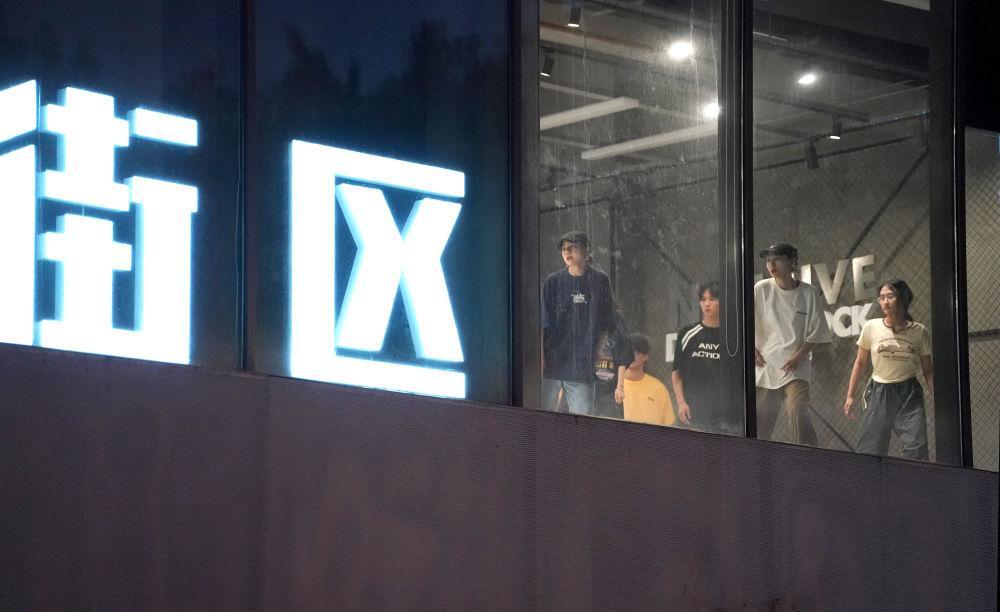 7月30日,年輕人在西安市一商業(yè)街區(qū)的舞蹈俱樂部中練習(xí)。新華社記者 邵瑞 攝
